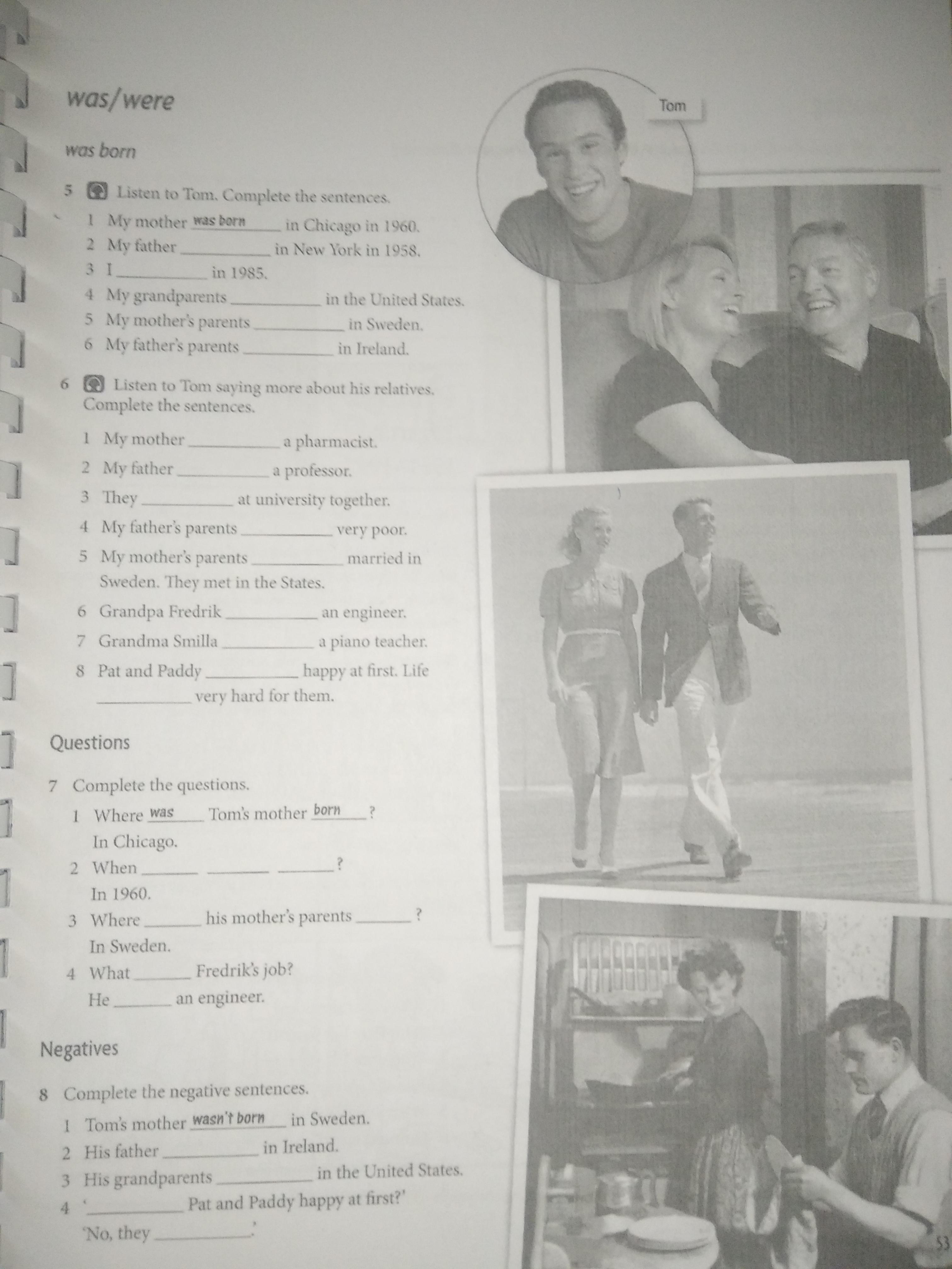 2) was born 3)was born 4)were born 5) were born 6)were born