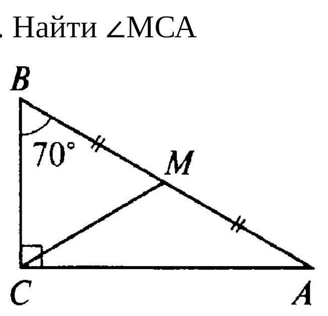 Из этого следует,что. СМ=МА,а треугольник АМС равнобедренный,углы при основании равнобедренного треугольника равны между собой