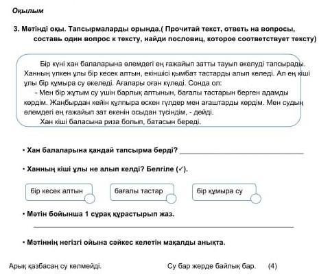 1)• Хан балаларына әлемдегі ең ғажайып затты тауып әкелуді тапсырады.