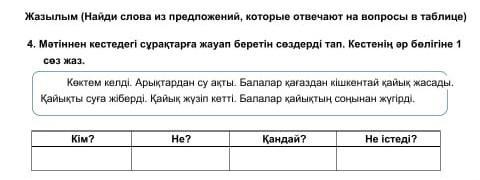 кім? - балалар не? су қайық қағаз қандай? кішкентай не істеді? келді жүгірді жасады жіберді ақты