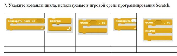 Ответ:Все эти циклы есть в Scratch кроме цикла "Всегда"