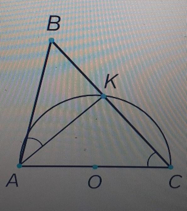В треугольнике ABC известны стороны AC=22, AB = 8 окружность с центром О построенная на стороне АС, как на диаметре пересекает сторону BC в точке K .Oказалось, что угол BAK=ACB. Найдите площадь треугольника BOC.