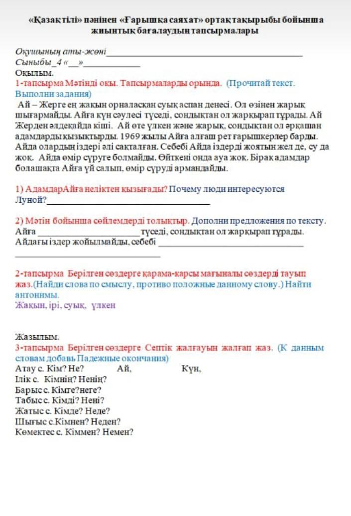 2 тапсырма: Жақын-алыс, ірі-ұсақ, суық-ыстық, үлкен-кіші