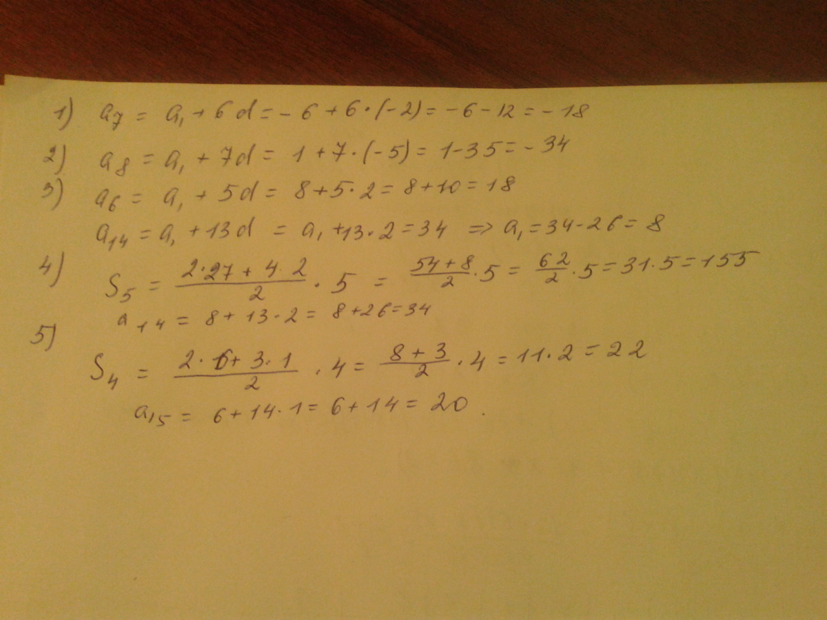 вычислите сумму 4 членов, а15,если а1=6 d=1
