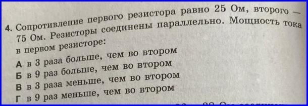 Сопротивление первого резистора равно 25 Ом,-второго 75 Ом.Резисторы соединены параллельно.Мощность тока в первом резисторе?Чему она равняется и во сколько раз больше ,чем во втором?Заранее спасибо!