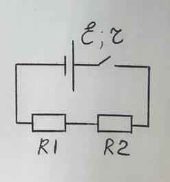 Два резистора сопротивлением R1 = 12 Ом и R2 = 5,5 Ом подключены к источнику тока с внутренним сопротивлением 2,5 Ом так, как изображено на рисунке. найдите ЭДС источника и напряжение цепи, если сила тока в ней 1,8 А.