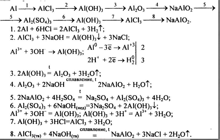 Al - AlCl3 - Al(OH)3 - Al2O3 - Na Alo2