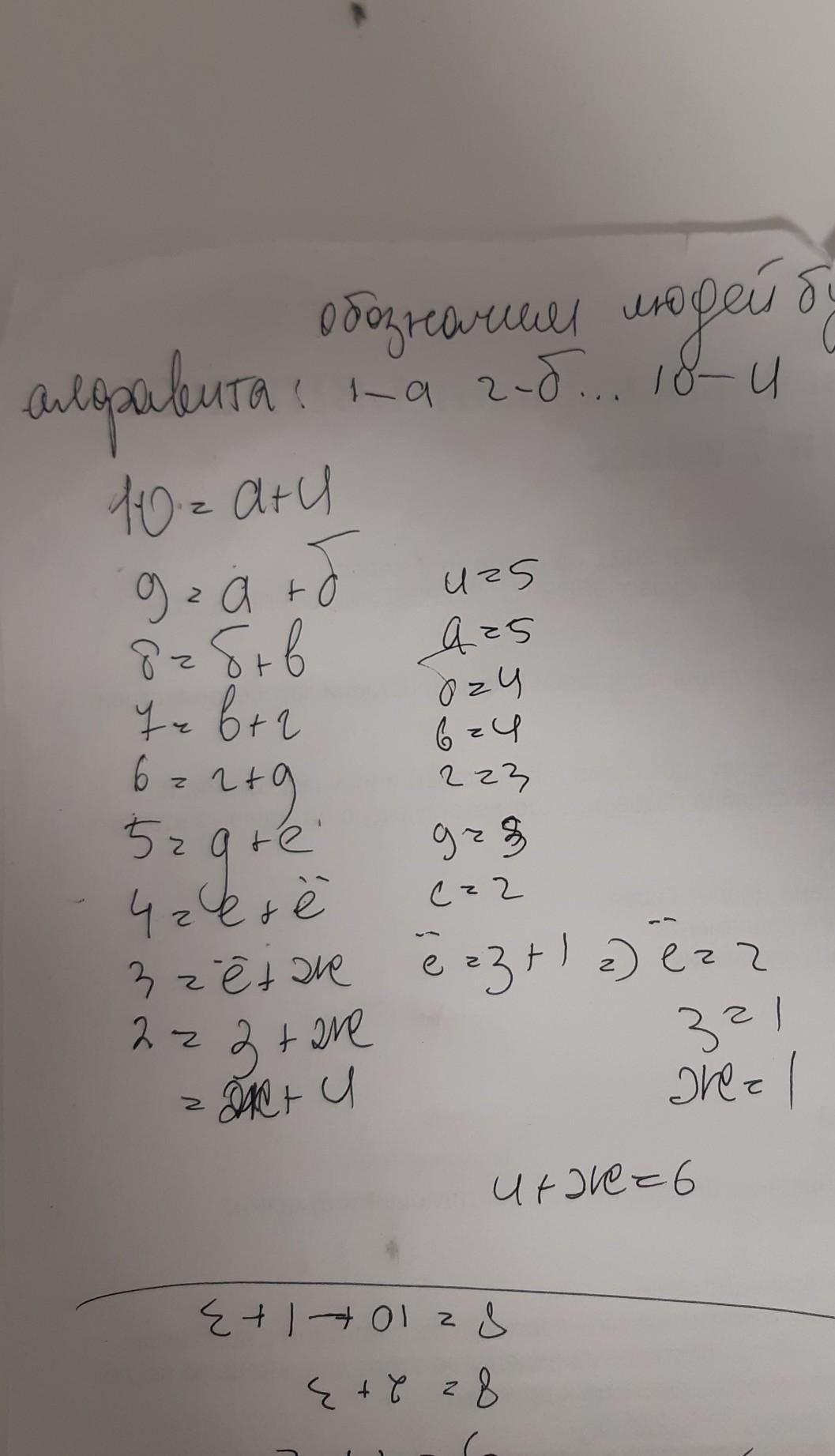 10 детей выстроились в круг. Каждый задумал целое число и сообщил его своему соседу по часовой стрелке. Затем каждый громко назвал сумму своего числа и числа соседа против часовой стрелки. Первый сказал «10», следующий по часовой стрелке — «9», следующий по часовой стрелке — «8» и т. д., девятый сказал «2». Какое число назвал оставшийся ребёнок?