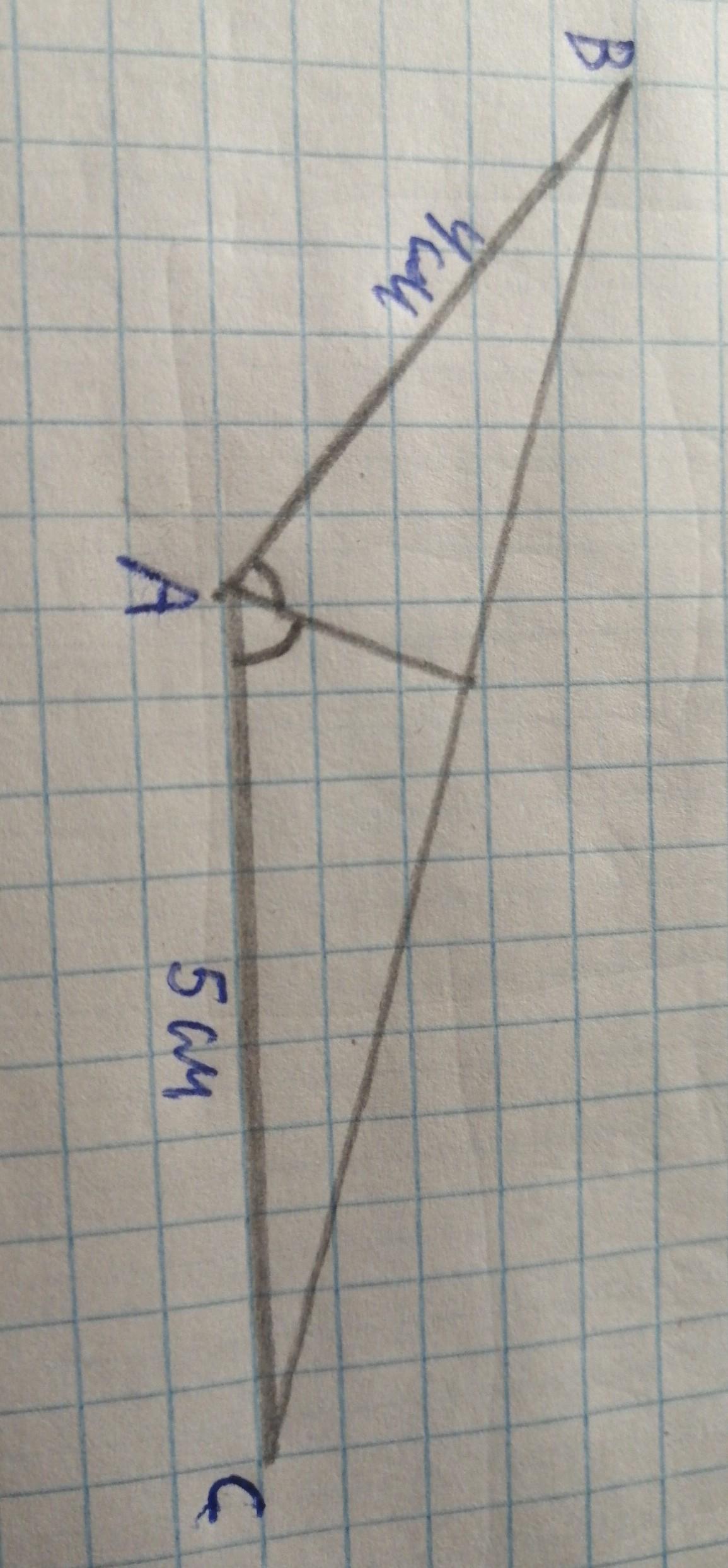 постройте треугольник ABC по сторонам AC равно 5 см AB 4 см угол А равно 40 градусов полученном треугольнике постройте биссектрису угла А