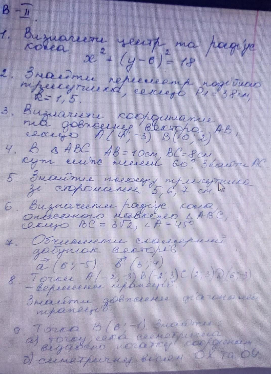 1. Визначити центр та радіус кола x²+(y-6)²=18