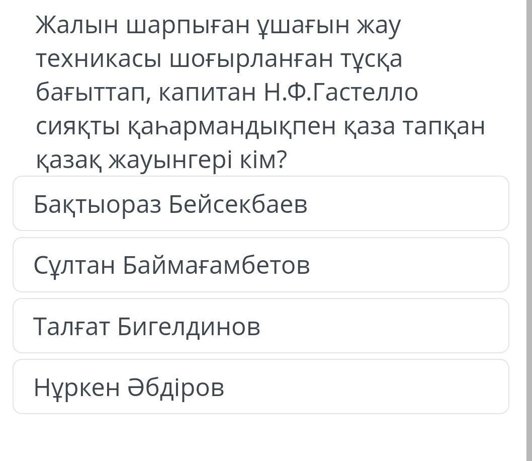 Жалын шарпыған ұшағын жау техникасы шоғырланған тұсқа бағыттап, капитан Н.Ф.Гастелло сияқты