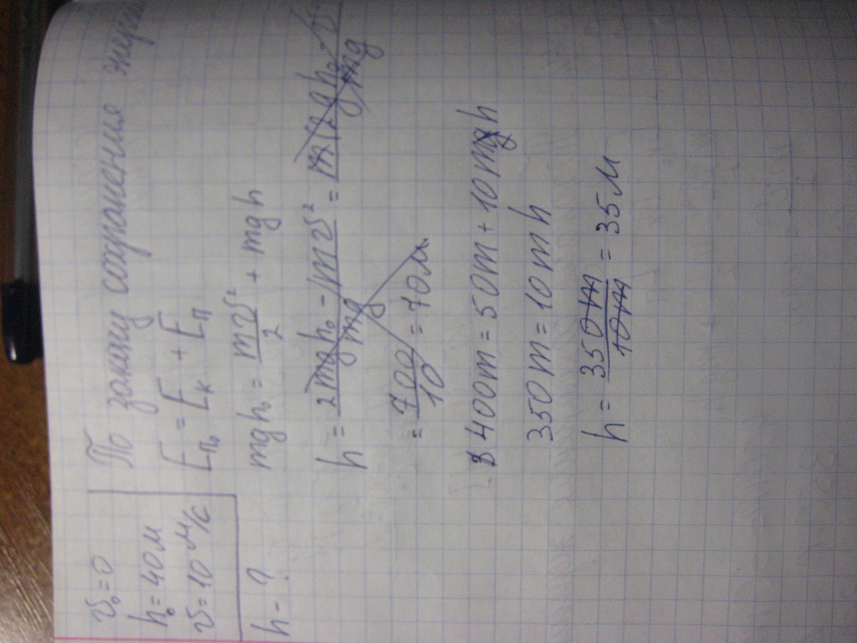Физика 8 класс:Тело,которое пребывает в состоянии покоя падает с высоты 40м.На какой высоте скорость его движения будет равна 10 м/с?Сопротивлением воздуха не учитывать.Решите в виде задачм,плиз!!