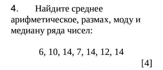 Найдите среднее арифметическое, размах, моду и медиану ряда чисел:
