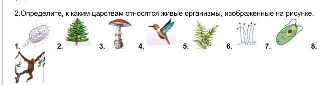1-бактерии 2-растения 3-грибы 4-звери 5-растения 6,7-бактерии 8-животные