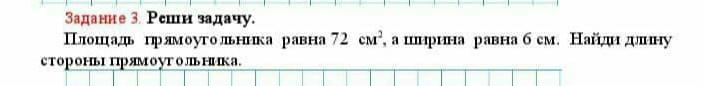 Реши задачу Площадь прямоугольника равна 72 квадратных сантиметров а ширина равна 6 см Найти длину стороны прямоугольника ДАМ ЛУЧШИЙ ОТВЕТ И 5 ЗВЕЗД