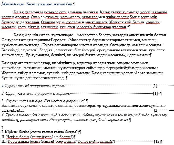 I. кіріспе бөлім:Оқиға қазақ даласында ерте заманда болды