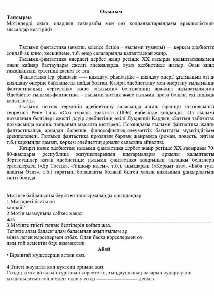 1)Мәтіннің басты ойы- ғылыми фантастика,поэзия туралы
