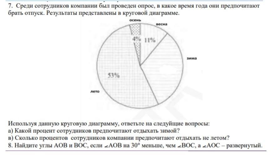 А) зимой любят отдыхать 100-53-4-11=32% опрошенных