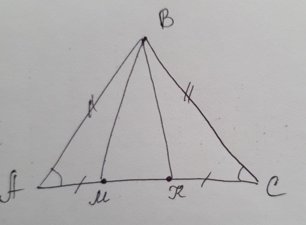 ∠ВАС=∠ВСА (т.к. ΔАВС равнобедренный)