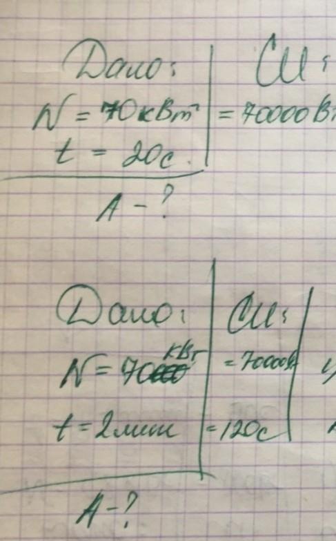 1) А=NT=70000•20= 14 00000 ДЖ = 1,4 МДЖ