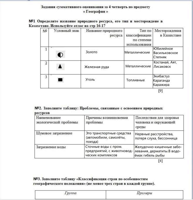 - Ответы на задания суммативного оценивания за 4 четверть по предмету « География » даны ниже в приложении