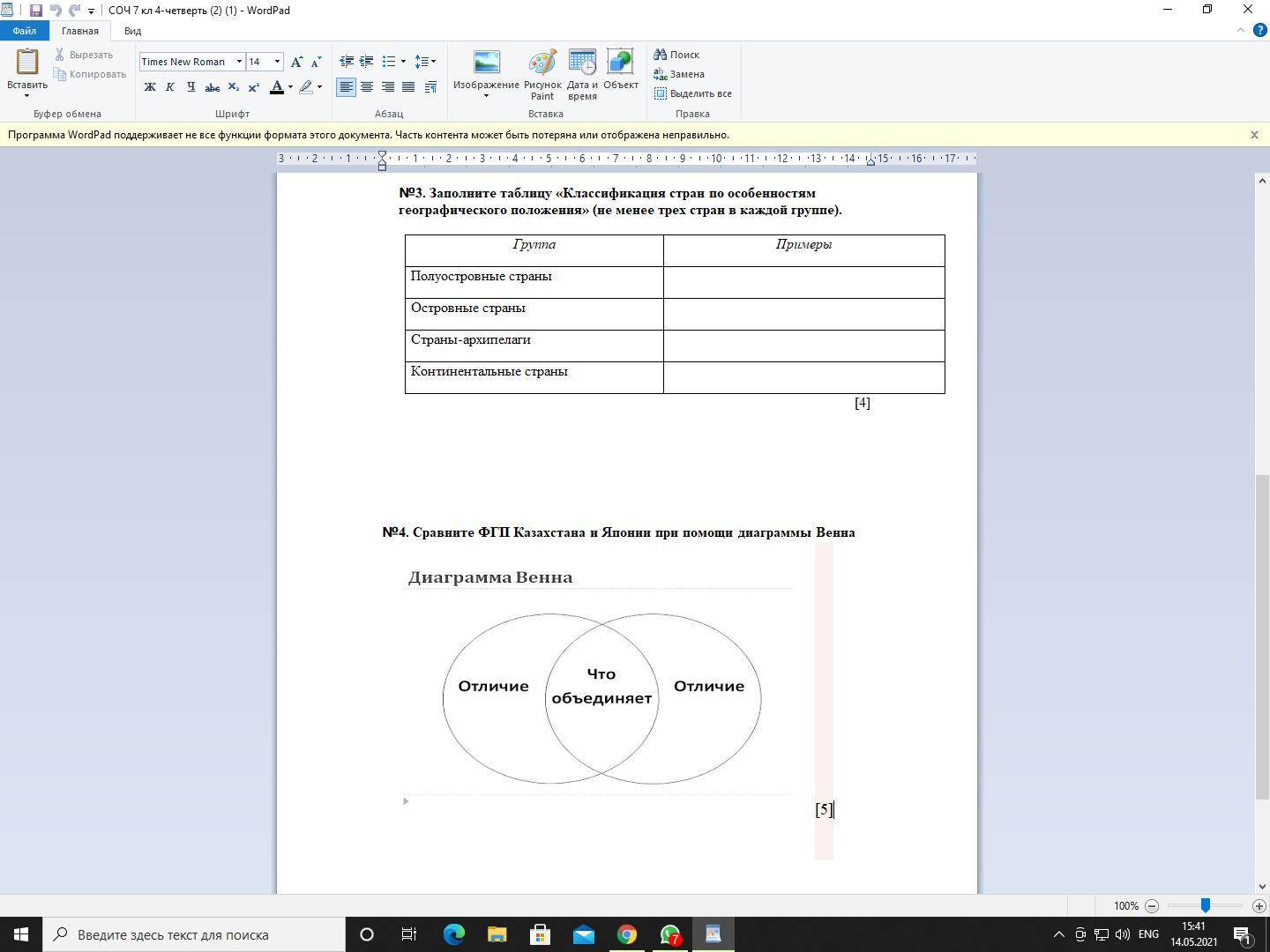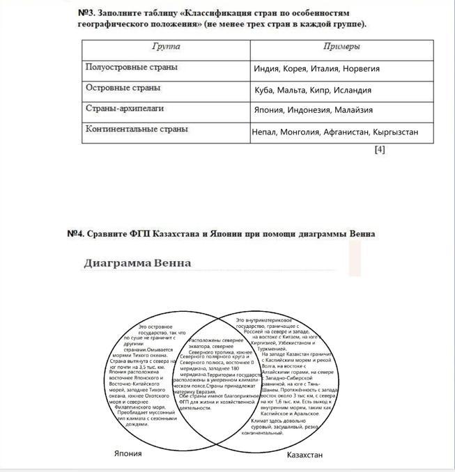 №4. Сравните ФГП Казахстана и Японии при помощи диаграммы Венна