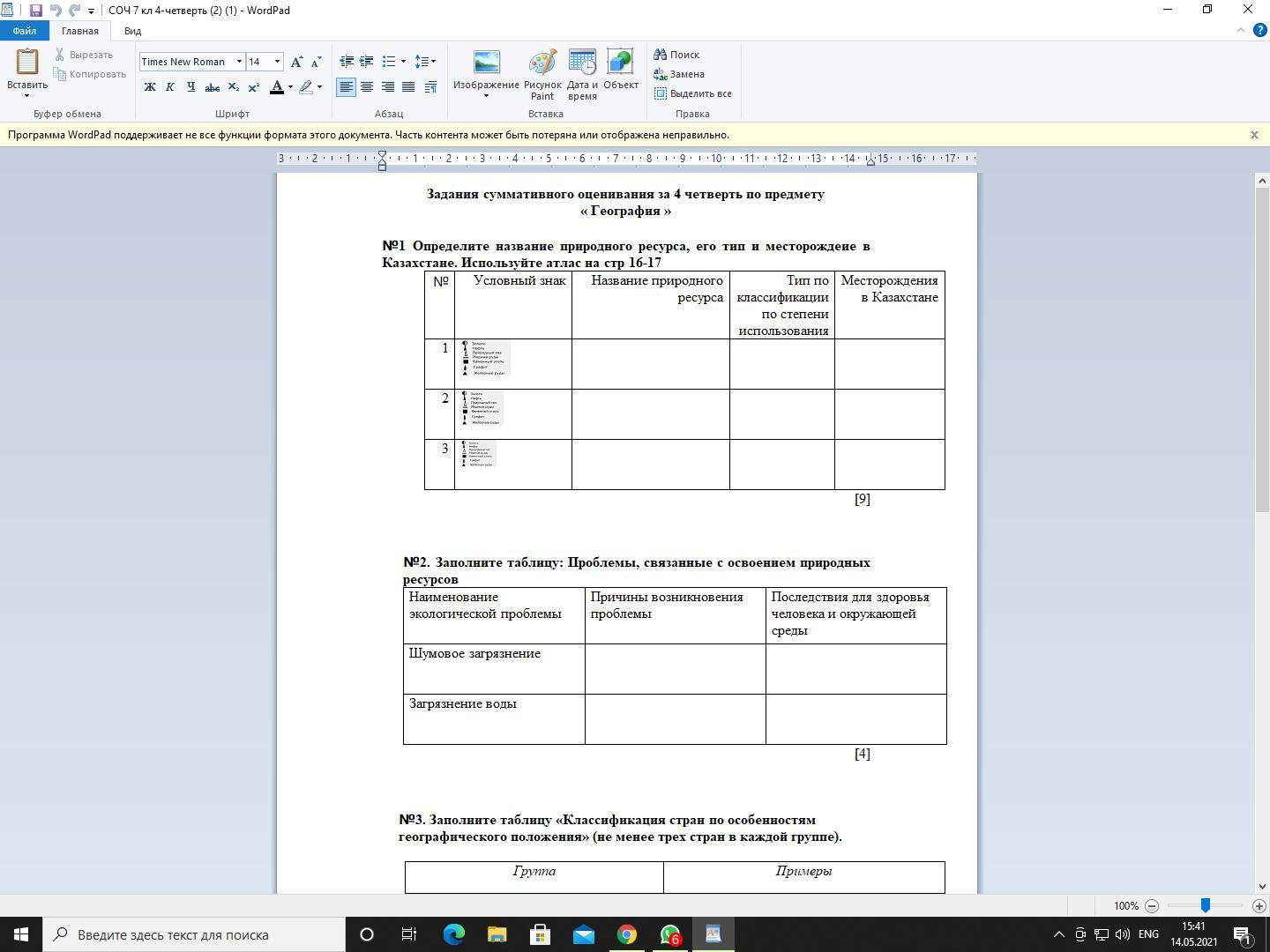 Задания суммативного оценивания за 4 четверть по предмету « География »