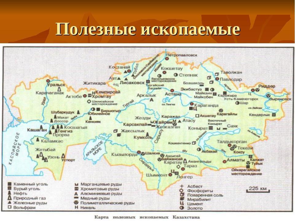 № Условный знак Название природного ресурса Тип по классификации по степени использования Месторождения в Казахстане