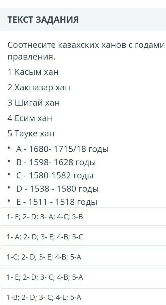 1-В; 2- D; 3- С; 4-Е; 5-А
