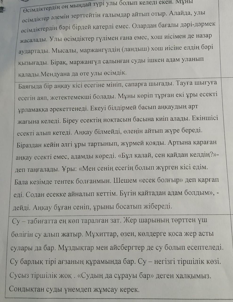 тірек сөз : су, пайда, тіршілік,табиғат,адам, тірі ағза