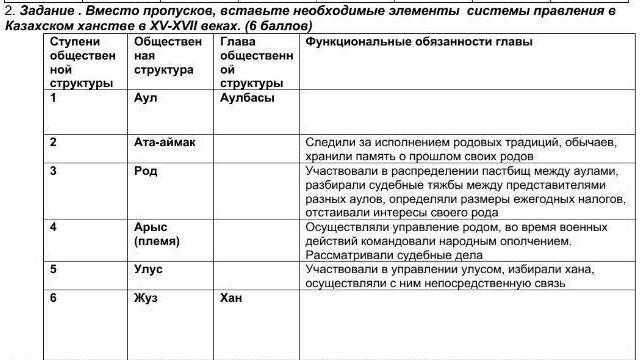 вместо пропусков ,вставьте необходимые элементы системы правления в казахском ханстве XV XVII