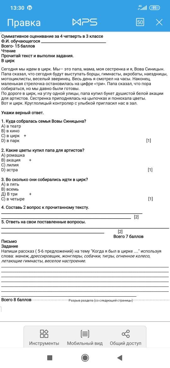 В прошлом году я впервые побывал в цирке со своей семьёй. Там нас приветливо встретили, проводили на места, и папа с мамой даже купили нам с сестренкой попкорн, когда был антракт. А представление было бомбическим: сначала на манеже выступали жонглеры, затем летающие гимнасты - их выступление было захватывающим! А за ними следом вышел дрессировщик, который пускал тигров через огненное колесо!