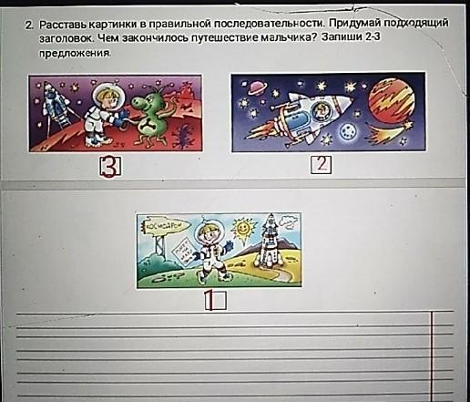 Расставь картинки в правильной последовательности. Придумай подходящий заголовок .Чем закончилось мальчика?Запиши 2-3 предложение