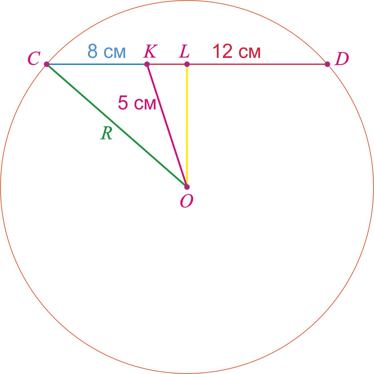 R^2 = CL^2 + OL^2 = (CD/2)^2+OL^2