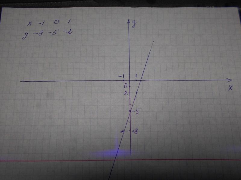 Построить график. График линейной функции, прямая линия. Придать значения х, подставить в уравнение, вычислить у, записать в таблицу. Для построения прямой достаточно двух точек, для точности построения определить три.