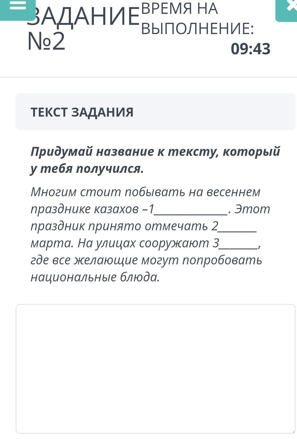Многим стоит побывать на весеннем празднике казахов –1_______________. Этот праздник принято отмечать 2________ марта. На улицах сооружают 3________, где все желающие могут попробовать национальные блюда.
