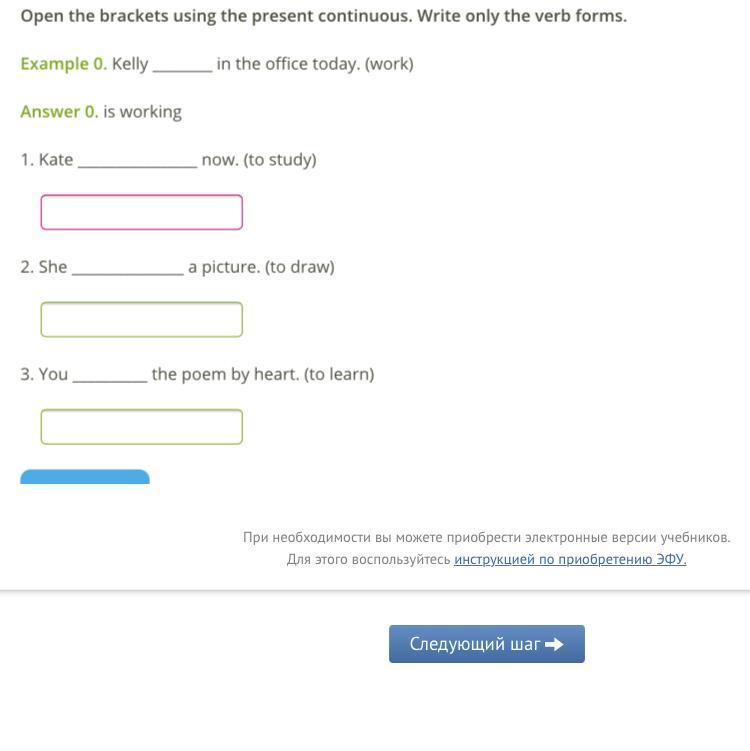 Ответ: 1. Kate is studying 2. is drawing 3. are learning