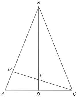 Точка D - середина основи АС рівнобедреного трикутника АВС. На стороні АВ позначили точку М так, що АМ:МВ = 2:7. У якому відношенні пряма ВD ділить відрізок СМ?