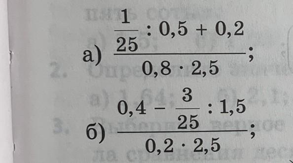 1)1/25:0.5=2/25 2)2/25+0.2=7/25 3)0.8×2.5=2 5)7/25:2=7/50