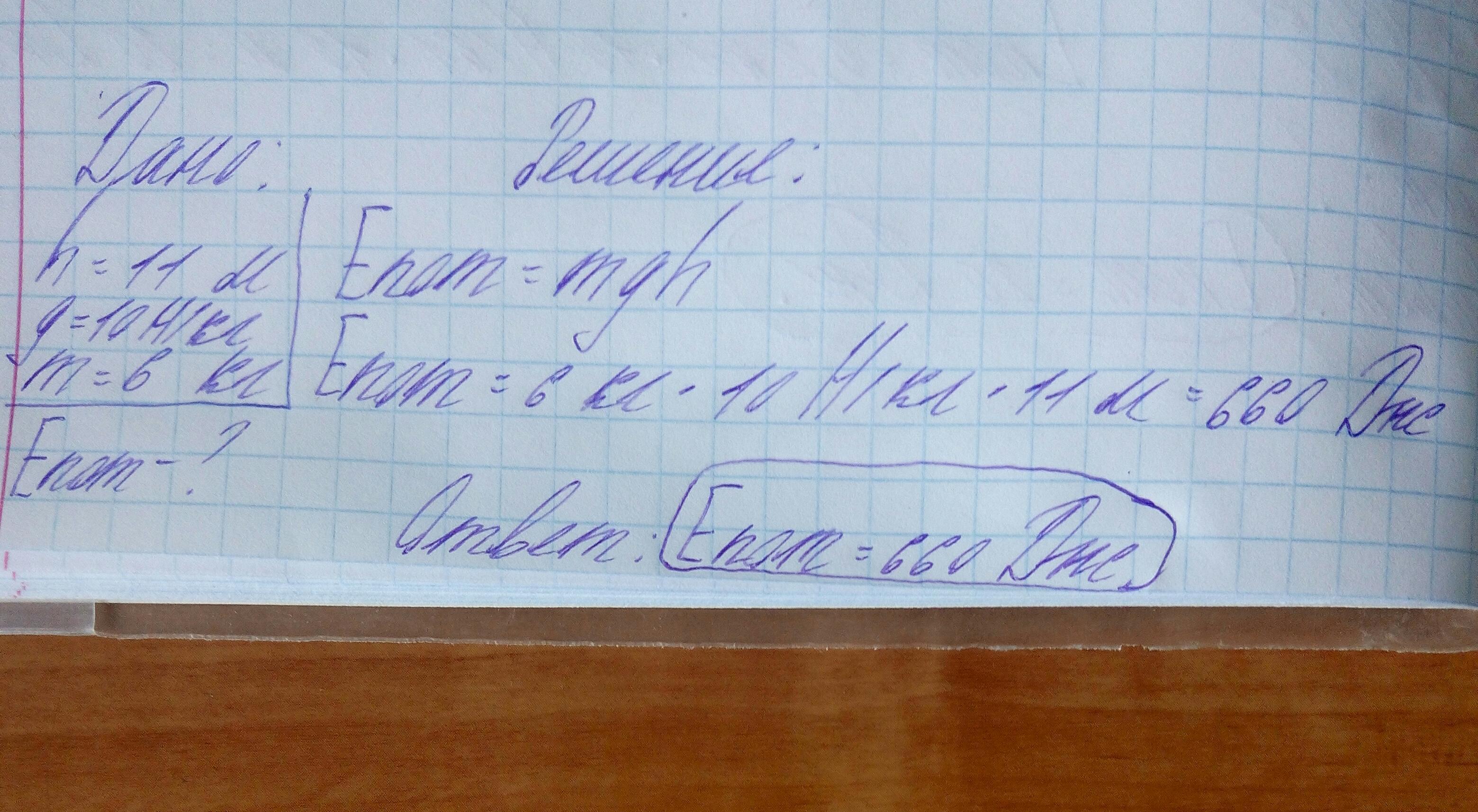 Какова потенциальная энергия камня, который поднят на высоту 11 м, и
