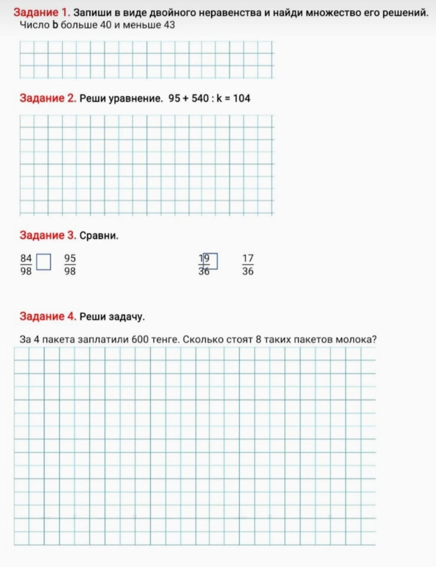 4) 600:4*8=1200(тенге) стоят 8 пакетов молока.