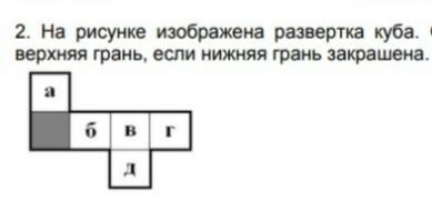 На рисунке изображена развертка куба. Определите, какойкоц буквой обозначена верхняя грань если нижняя закрашена