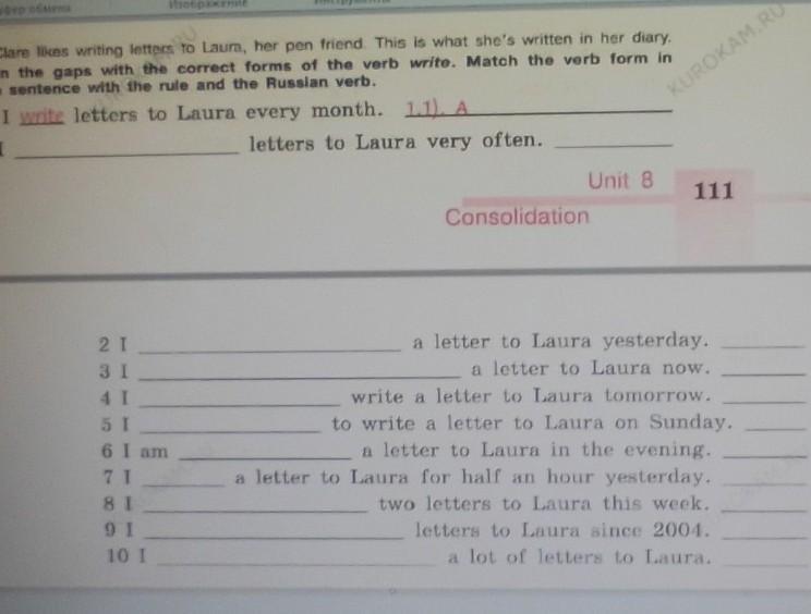 6 I am writing a letter to Laura in the evening. 3.2) A