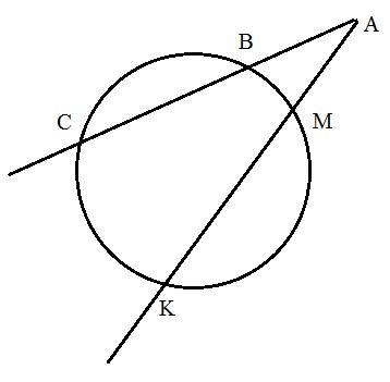 35баллов дам. Из точки А, лежащей вне окружности проведены лучи АС и АК, пресекающие окружность в точках В, С и М, К соответственно, начиная от точки А. Найти длину отрезка АМ и МК, если АВ = 4, ВС = 6, АК = 12.