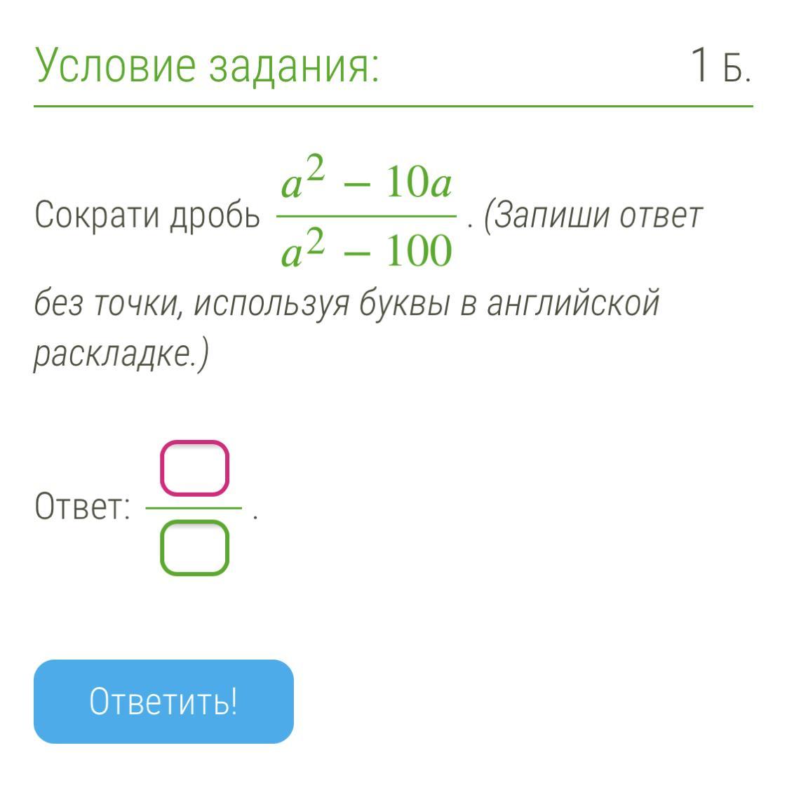 a(a-10)/(a^2-10^2) = a(a-10)/(a-10)(a+10) = a/(a+10)