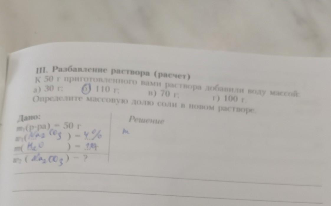 раствор разбавили в (110+50)/50=3.2 раза, значит концентрация уменьшится в 3.2 раза.