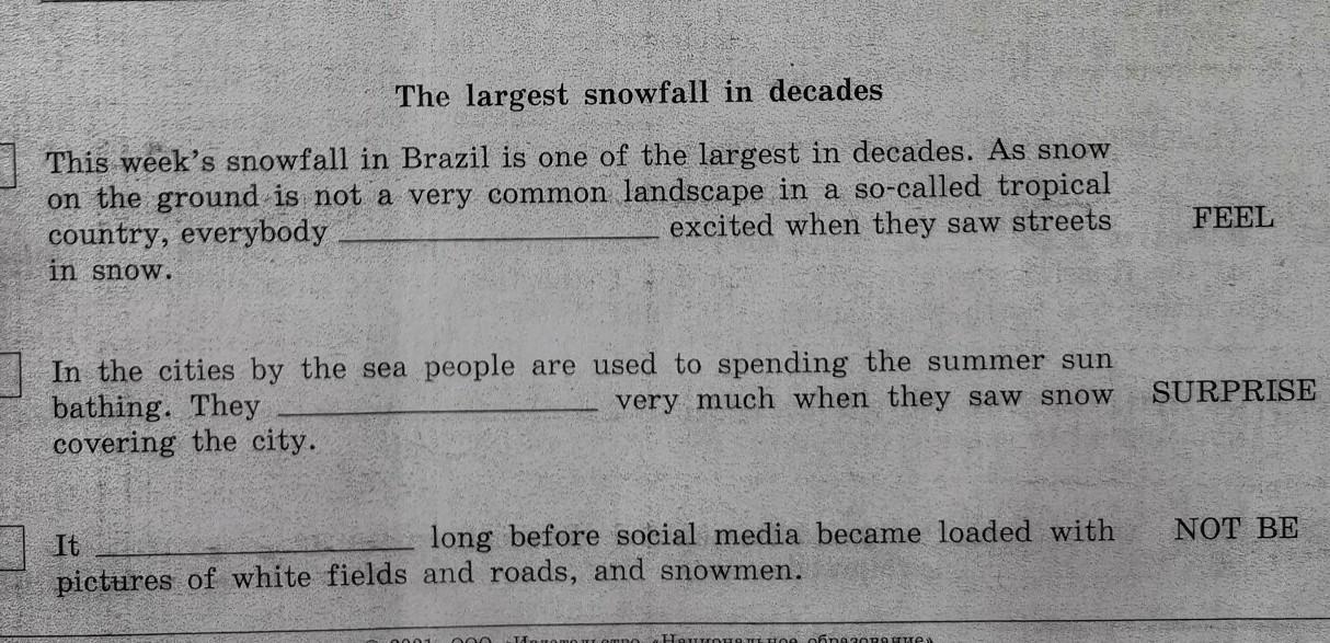 In the cities by the sea people are used to spending the summer sun bathing. They were surprised very much when they saw snow covering the city.