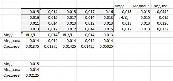 что значит н/д у моды первого столбца и третьего, почему так получилось, и что за данные справа от таблицы у Вас