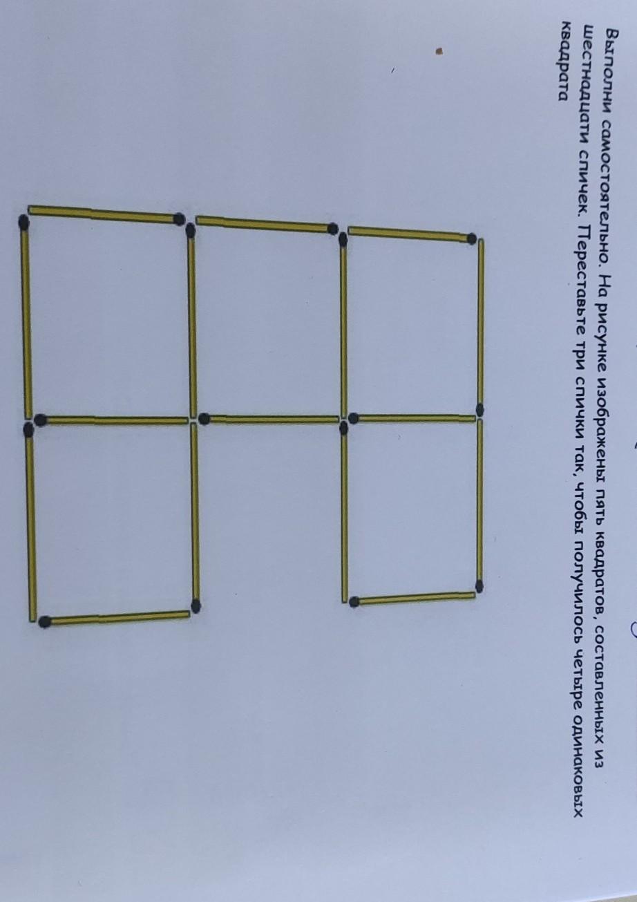 шестнадцати спичек. Переставьте три спички так, чтобы получилось четыре одинаковых