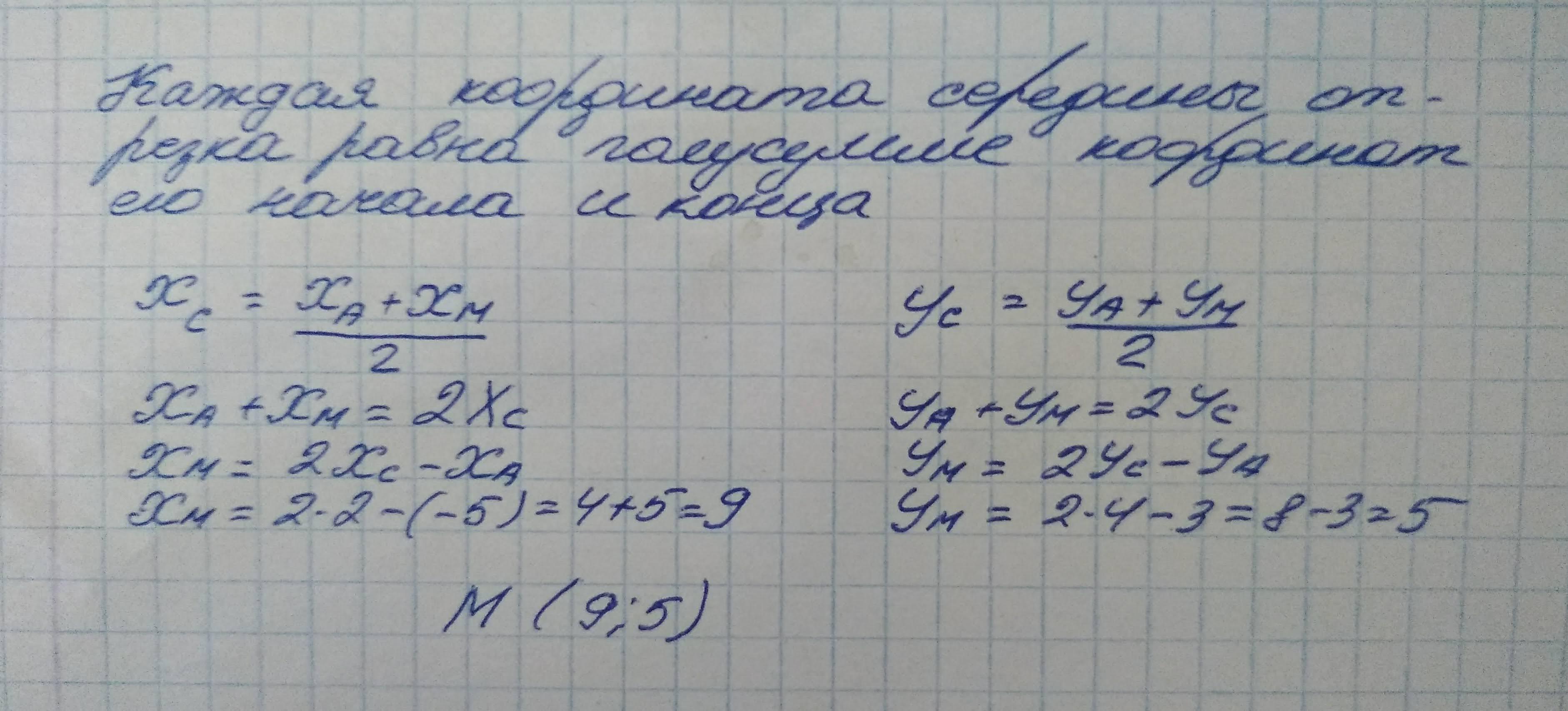 Найти координату точки M если даны координаты следующих точек A(-5;3),
